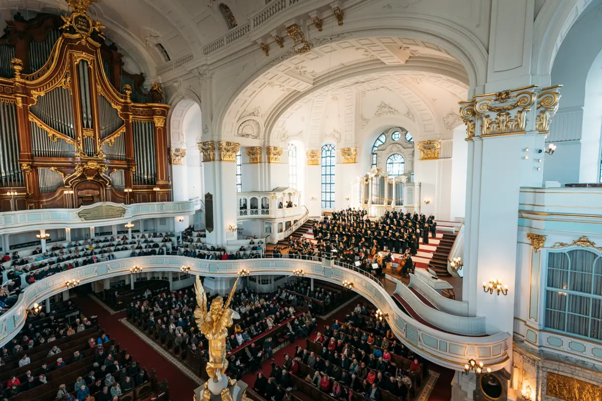 Dans le cadre de votre séjour au Louis C. Jacob, vous pourrez assister à l'Oratorio de Noël de Jean-Sébastien Bach (Cantates I à III) dans l'impressionnante église Saint-Michel. Des chœurs festifs, des trompettes rayonnantes et des arias émouvantes racontent l'histoire de Noël avec une puissance sublime - portée par l'acoustique unique de l'église Saint-Michel de Hambourg.
